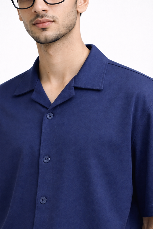 Pearl Blue Structured Box-Fit French Terry Shirt