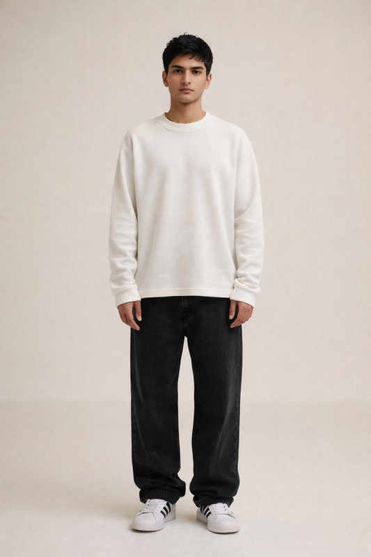 Ivory Grid Oversized Waffle Longsleeve