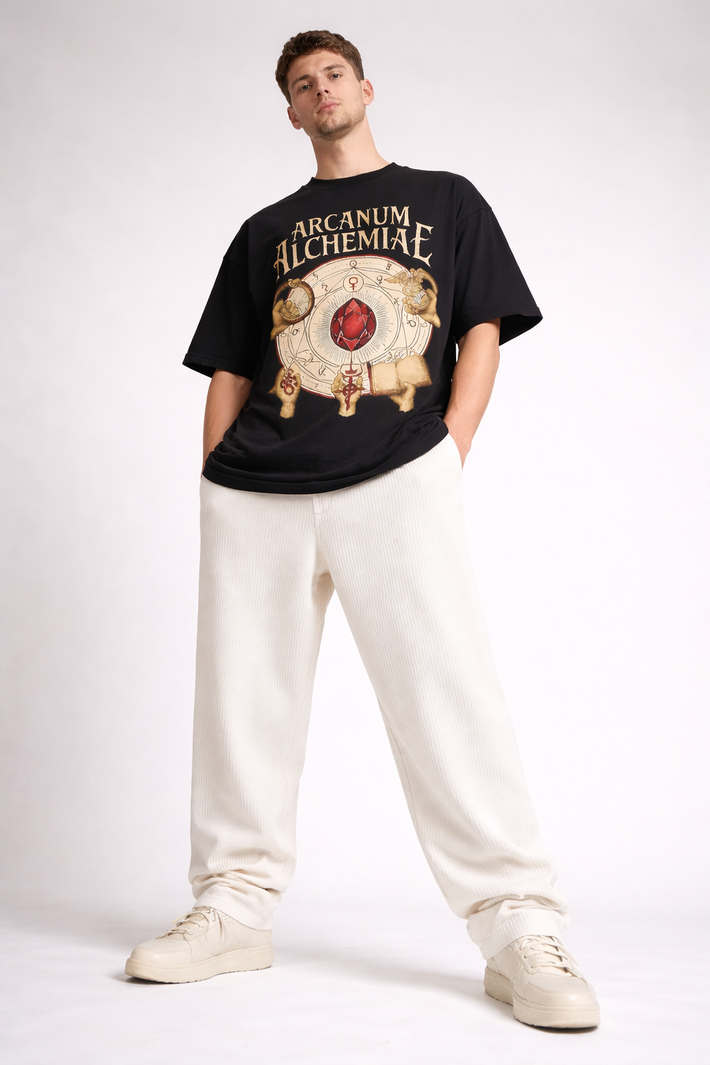 Stop gatekeeping the heat. This isn’t just a graphic tee; it’s a whole ritual. Inspired by dark academia and mystical alchemy, the Arcanum Alchemia drop is for those who live for the "lore" behind their fit.