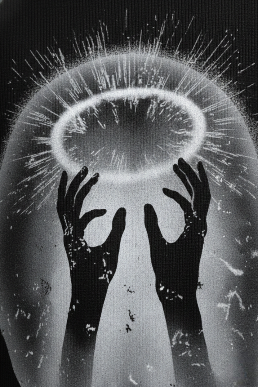 Eclipse Halo – Black Oversized Waffle Tee